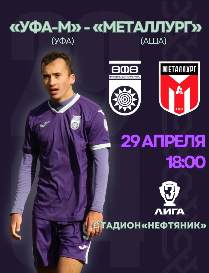 Сегодня, 29 апреля, «Уфа-молодежная» в матче Кубка Третьей лиги принимает ФК «Металлург» г. Аша.